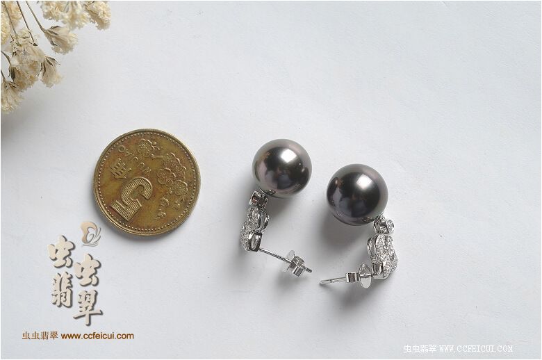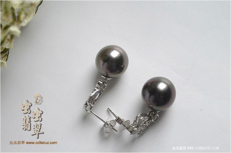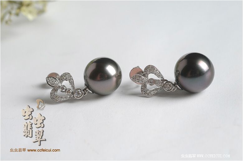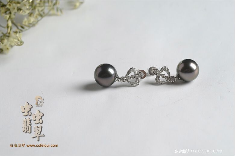 商品名称:爱玉姐姐虫网团大溪地珍珠耳坠子镶嵌定制(18K白伴钻)