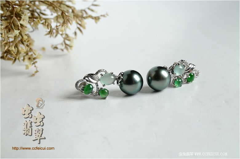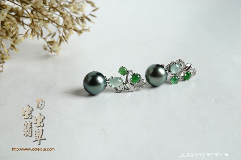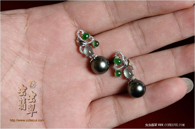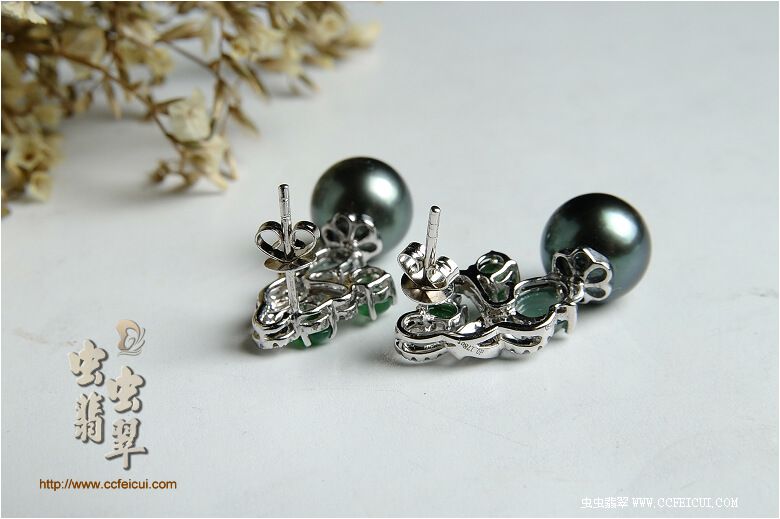 商品名称:dodowj824的虫网团大溪地镶嵌耳环定制(G18K伴钻)
