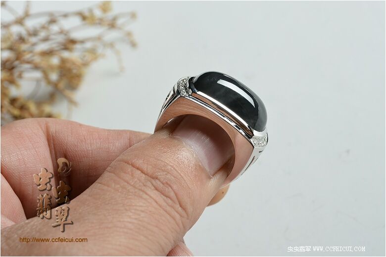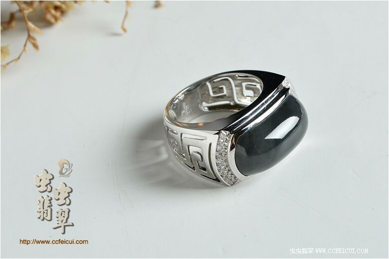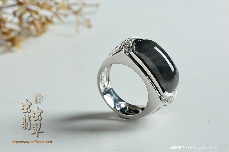 商品名称:lxg560704[G18K白金钻石精镶海藻花料大马鞍翡翠男戒]镶嵌定制