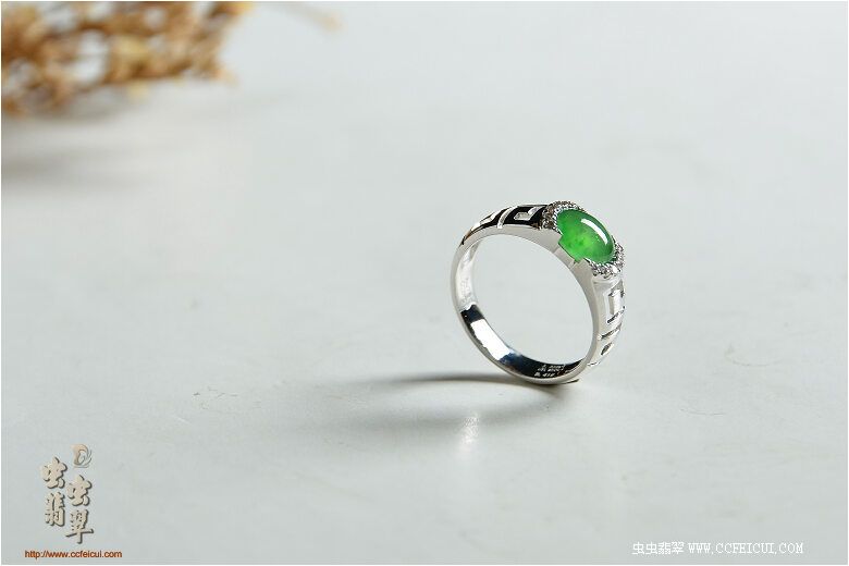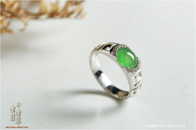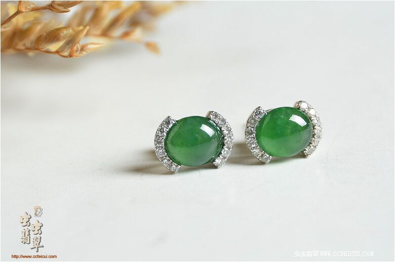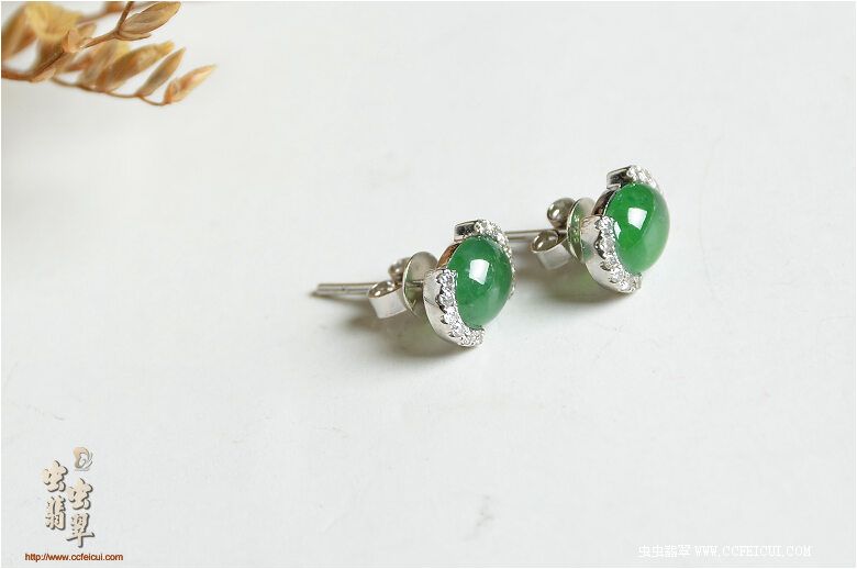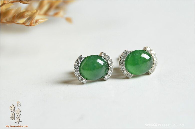 商品名称:杨小姐[G18K白金伴钻奶奶绿女戒耳钉套装]镶嵌定制