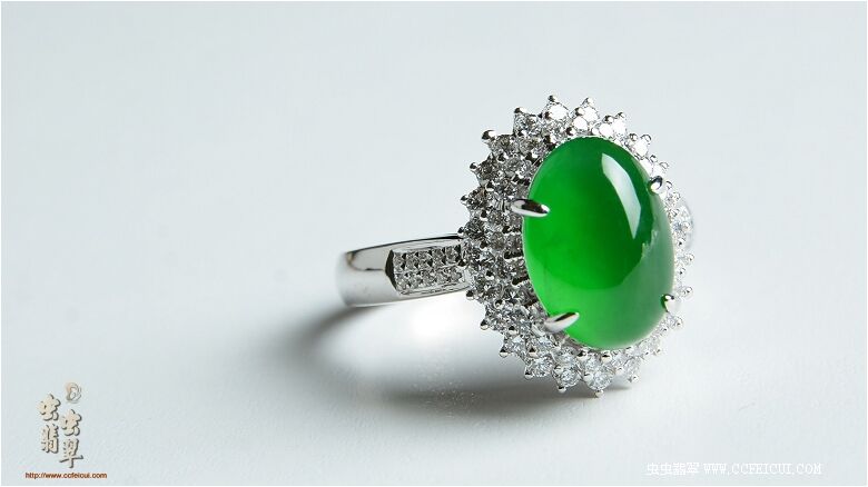 商品名称:晓荷的比色石【G18K白+钻镶满绿女戒】