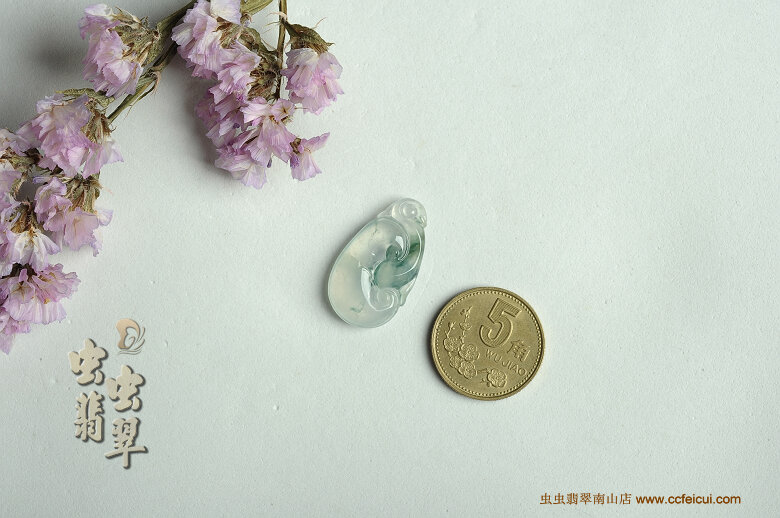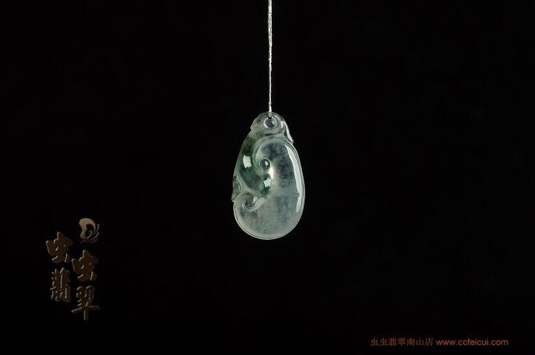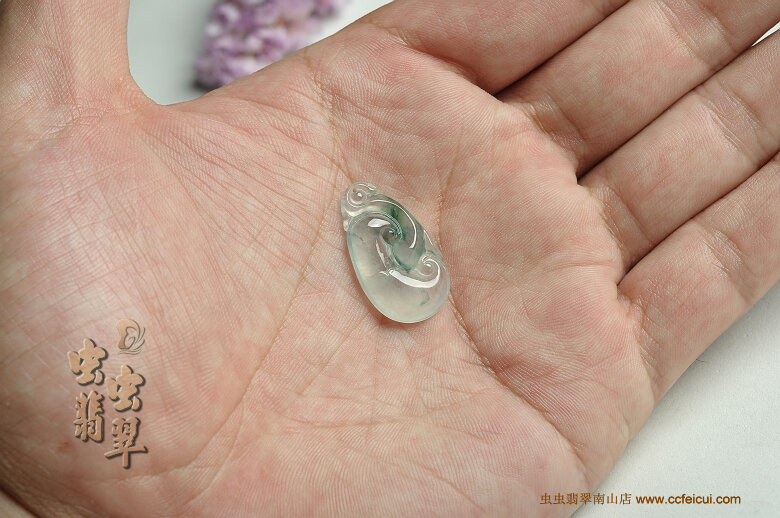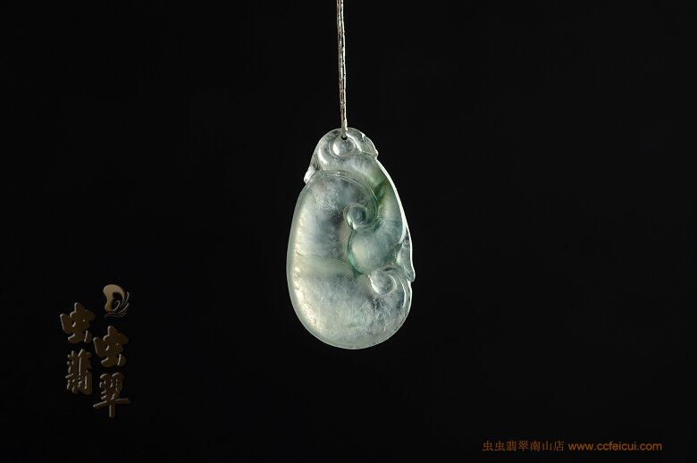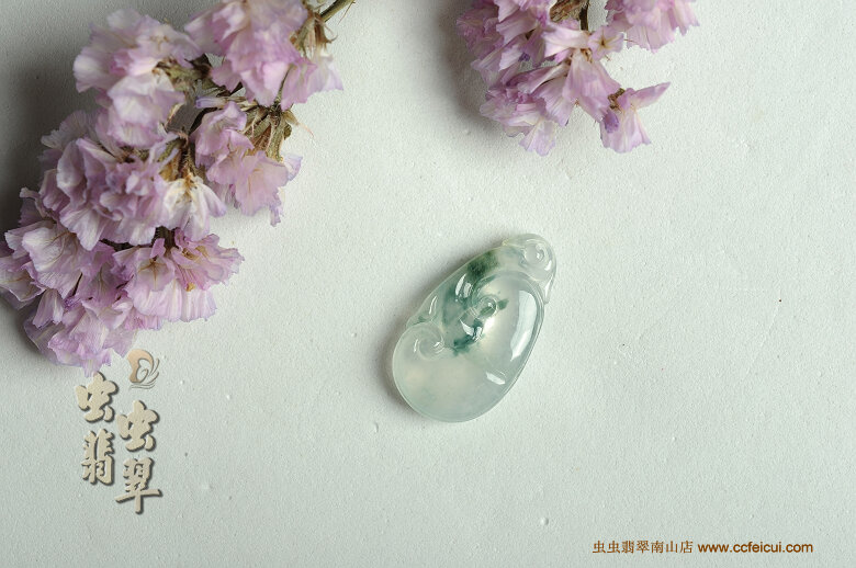 商品名称:冰荧飘花如意翡翠挂件