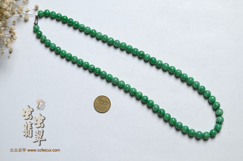 珠子直径7.6—9mm,一共66颗。