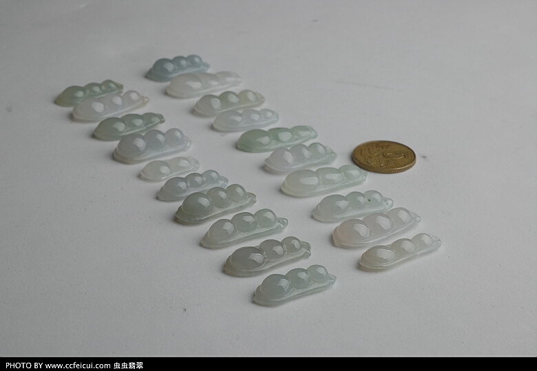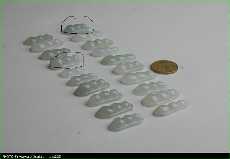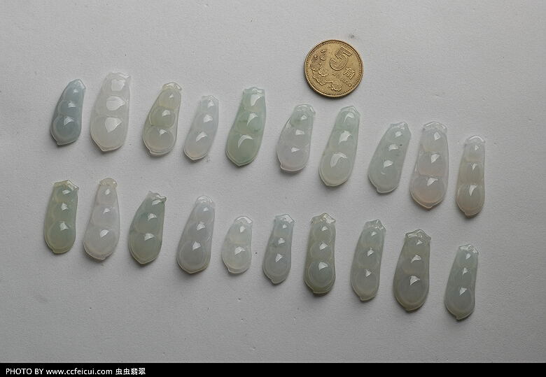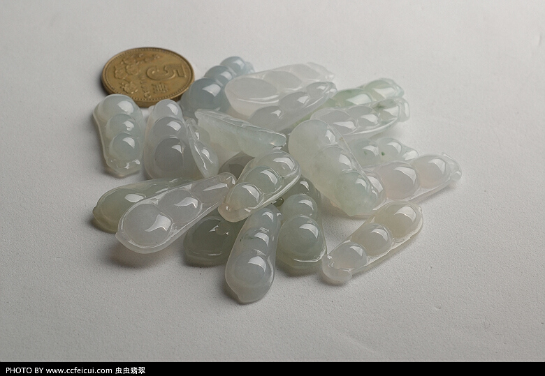 豆子因为形态饱满,造型圆润,线条流畅,而且最能表现翡翠的种水魅力~`