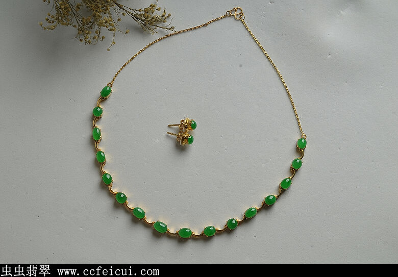 商品名称:正翠绿翡翠蛋面套装18P(已售)