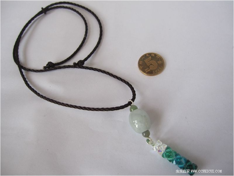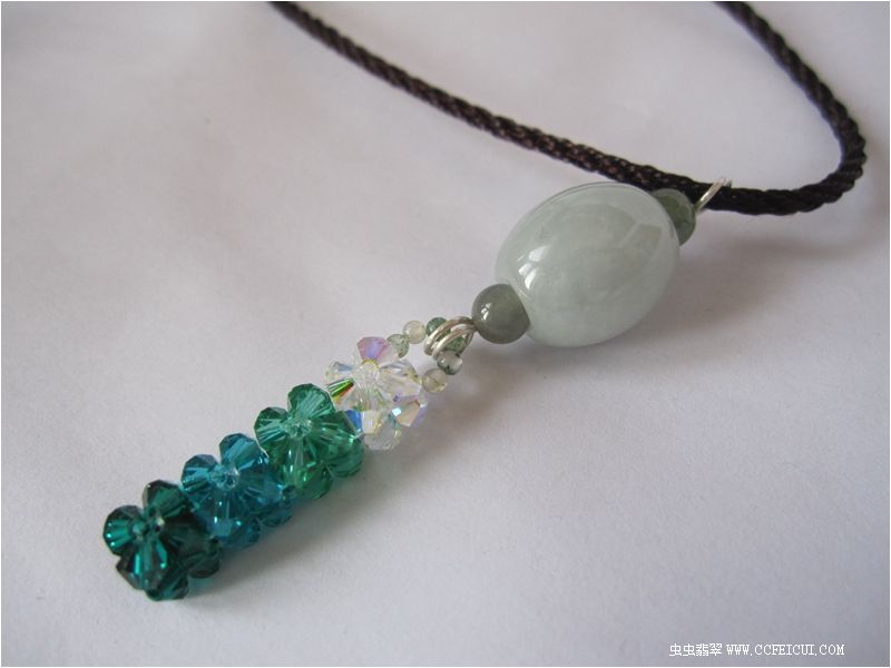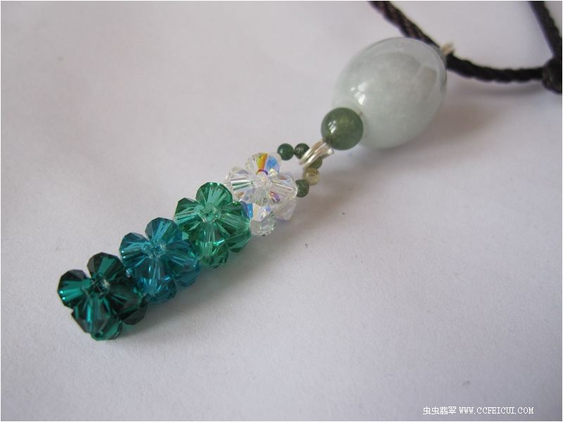 冰糖底的大路路通,配施华洛世奇水晶编织成的渐变吊坠,项链绳配黑褐色,仿佛沉醉于一汪潭水之中。