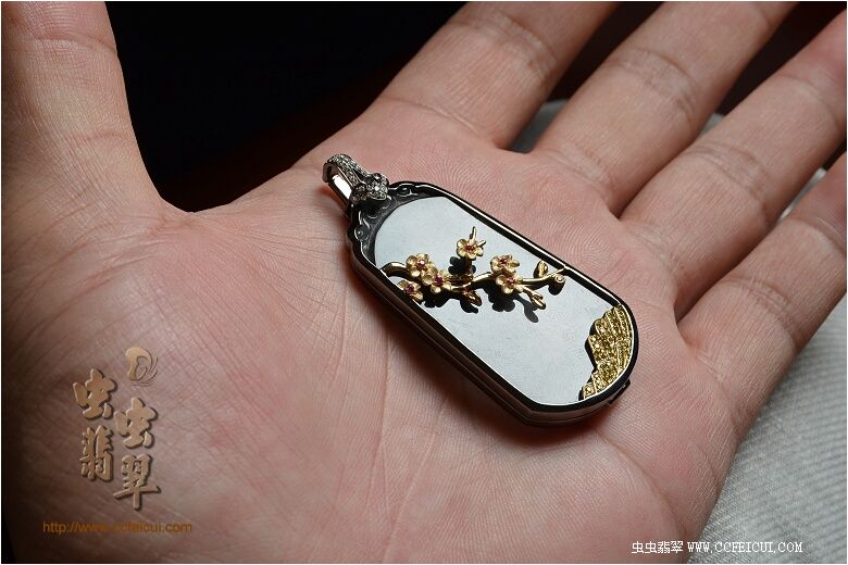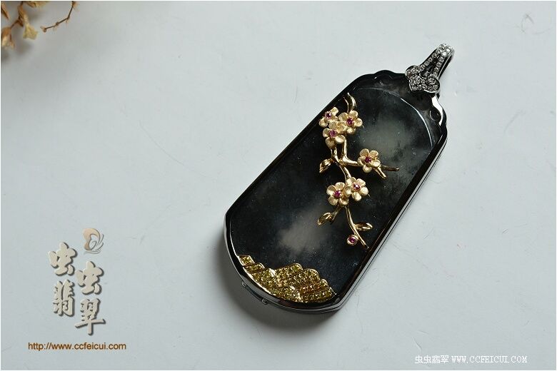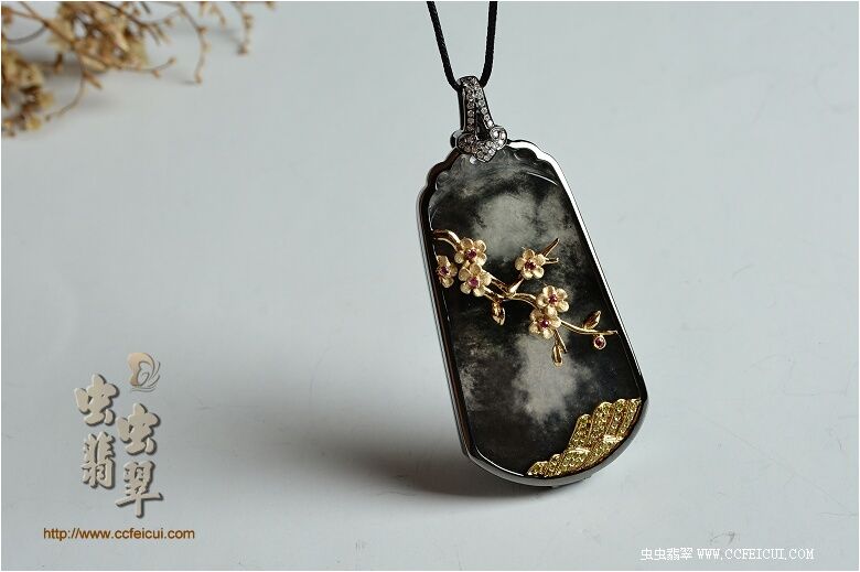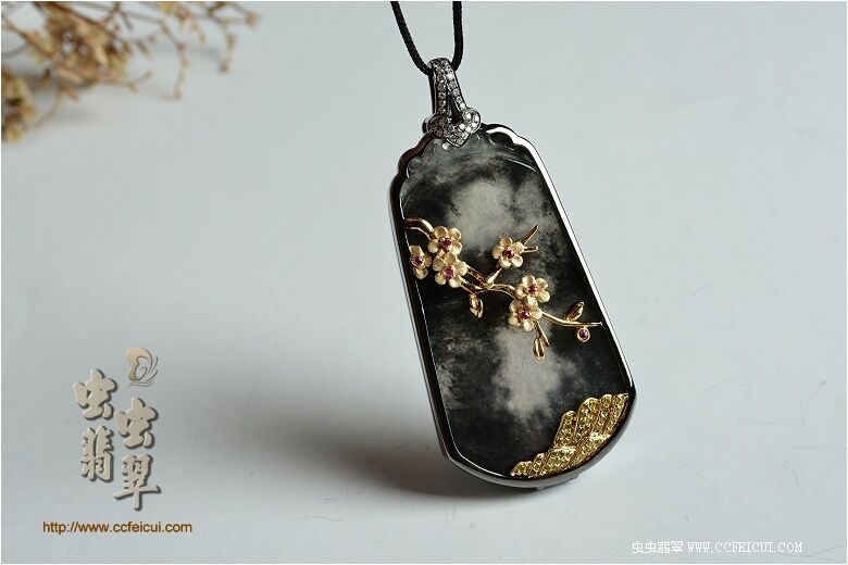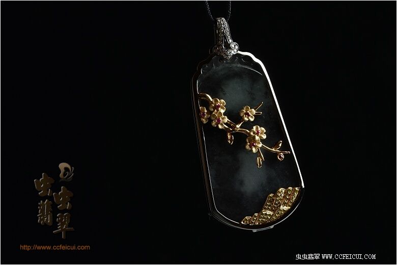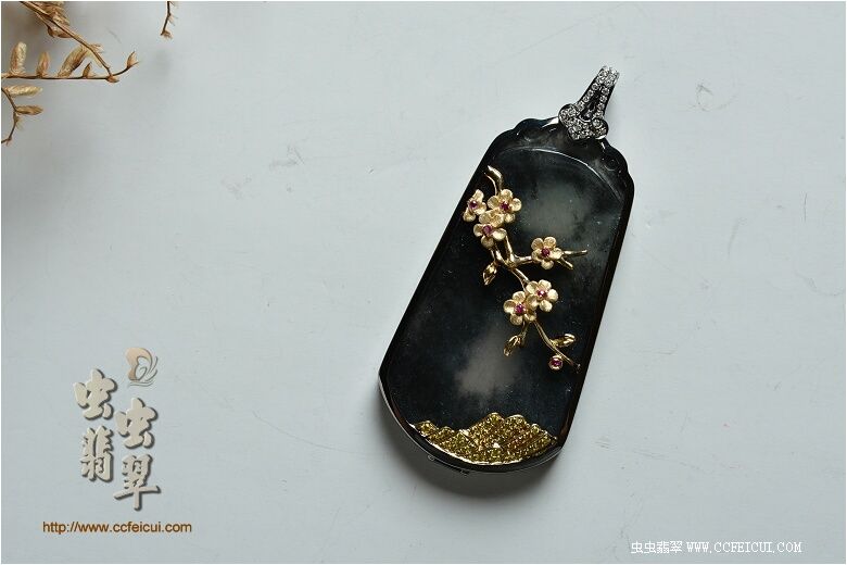网站首页 -> 论坛首页 -> 虫虫饰品 -> 个性定做 -> 灏航妈【G18K黑金+黄金伴钻镶翡翠黑冰水墨梅花吊坠】镶嵌定制(樱子设计) |