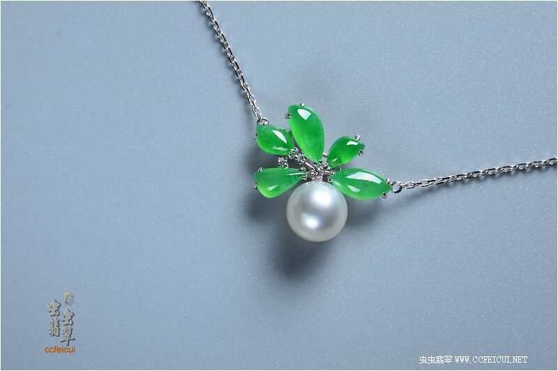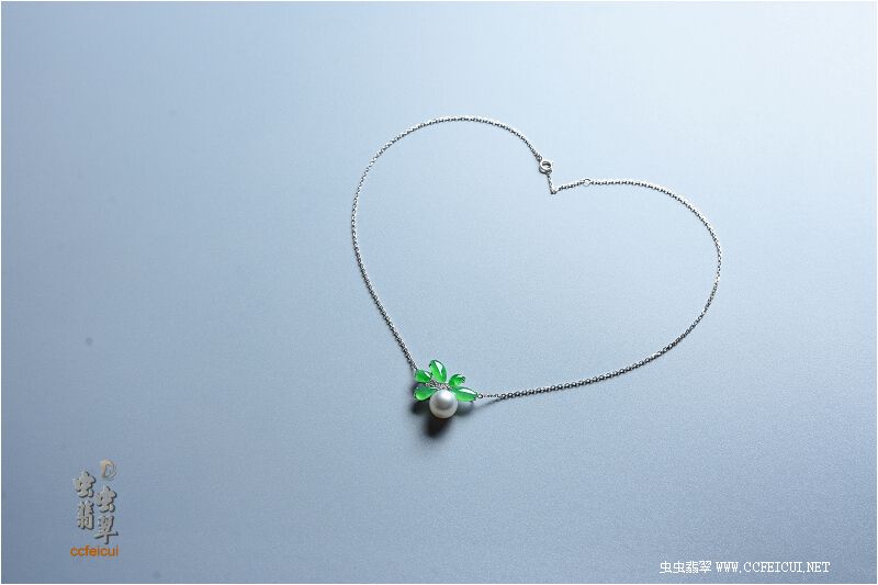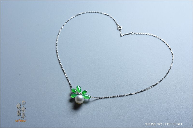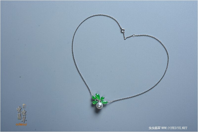 商品名称:败家【G18K白金伴钻镶绿团团珍珠项链】镶嵌定制