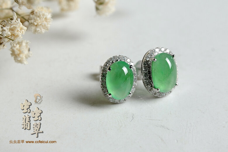 商品名称:5-G18K白金镶钻冰翠翡翠耳钉(已售)