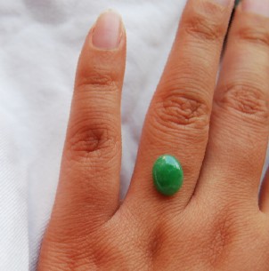 糯冰种绿蛋蛋,色不均但很抢眼。棉蛮多的,表面就能看得见,个头蛮大,做个戒指的话,也可以做个吊坠