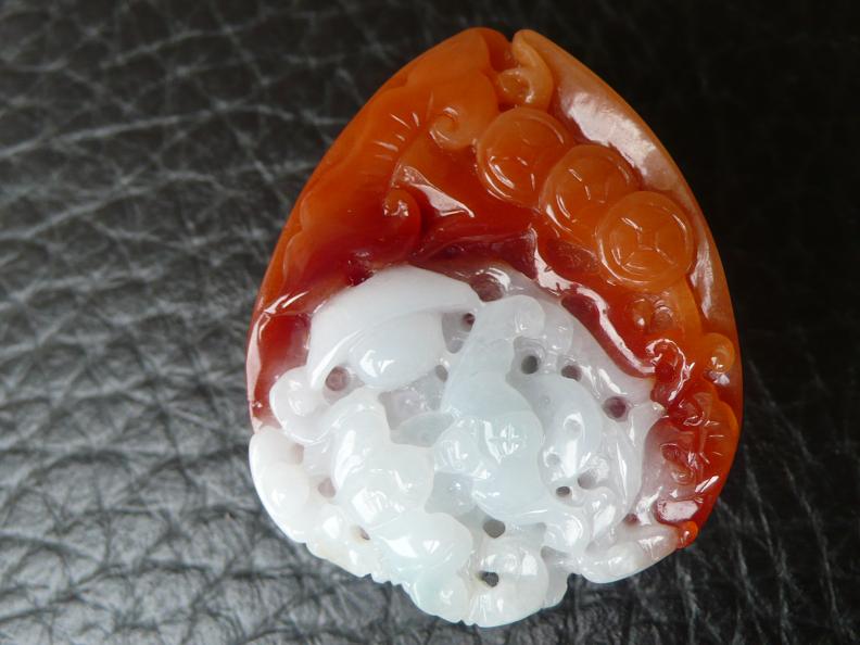就心而言,一是白的部分雕到凌乱,整体效果不突出造成材料浪费;二是中间有一片很漂亮的红翡没能挖出来,整块材料的亮点被掩盖了;三是--------