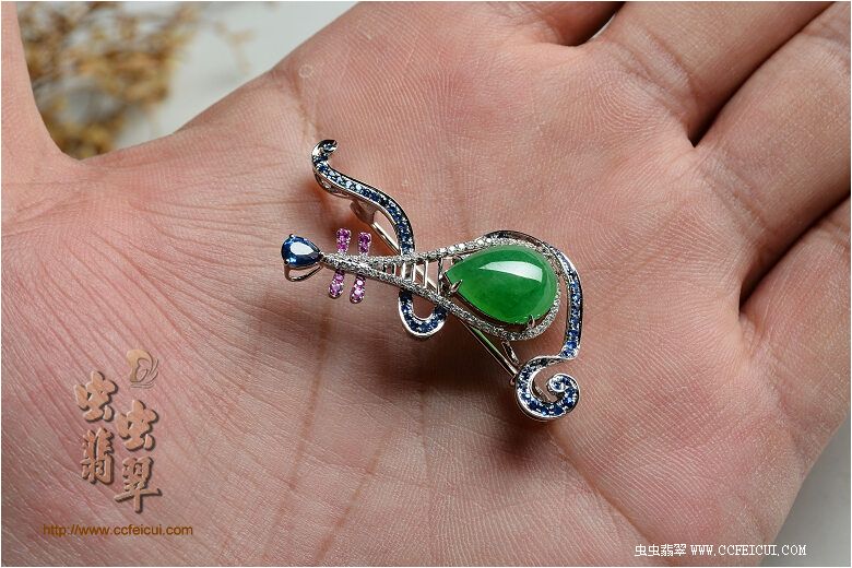 网站首页 -> 论坛首页 -> 虫虫饰品 -> 个性定做 -> pearl【G18K白+钻、彩宝镶翡翠满绿蛋面飞天胸吊两用首饰】镶嵌定制(樱子设计) |