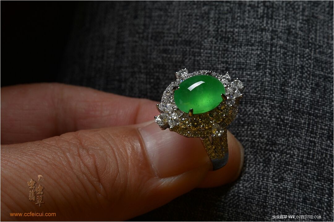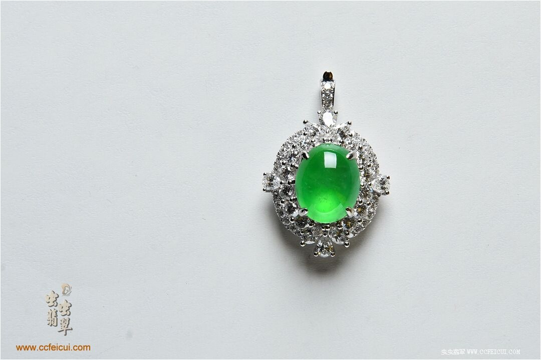商品名称:纸老虎[玻璃底阳绿翡翠戒指吊坠两用款]镶嵌定制