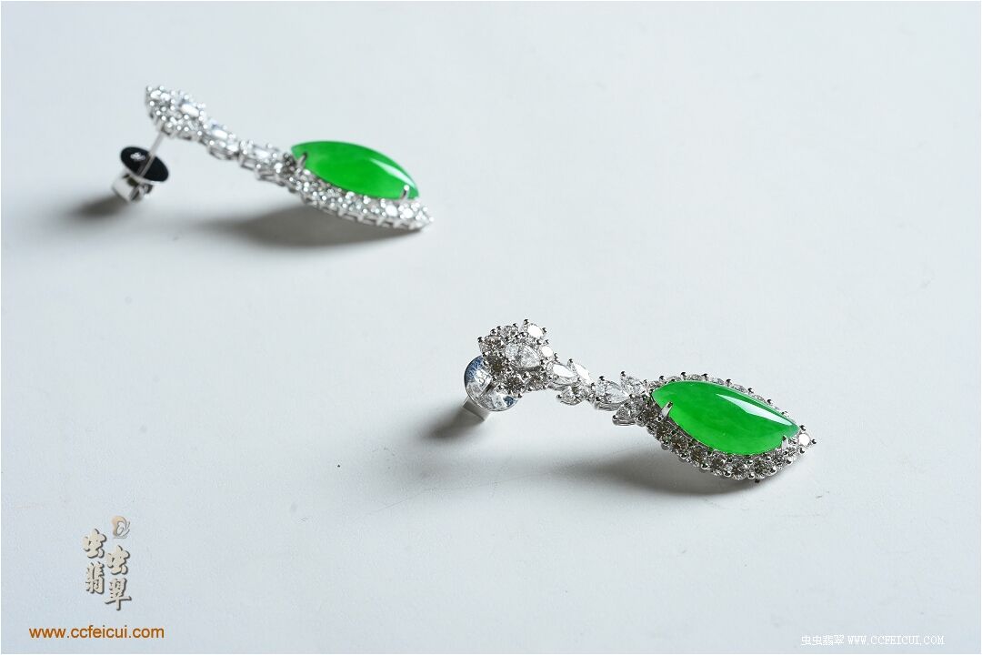 商品名称:刘小姐[有色团高冰阳绿异形翡翠钻镶耳环]镶嵌定制