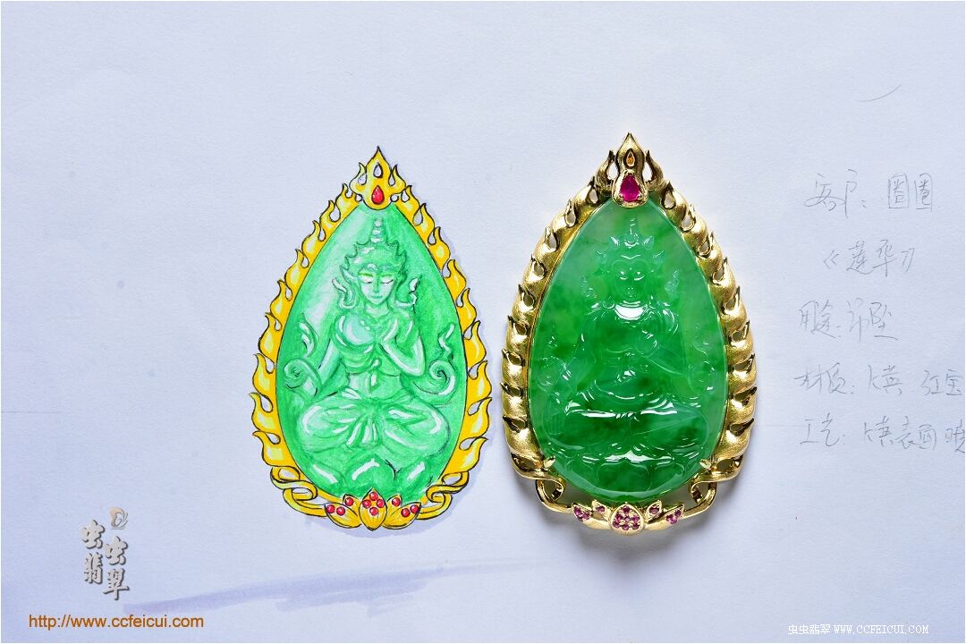 网站首页 -> 论坛首页 -> 虫虫饰品 -> 个性定做 -> 圈圈【G18K黄+彩宝镶满绿翡翠菩萨(莲华)吊坠】镶嵌定制(无尤设计) |