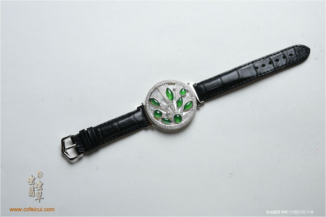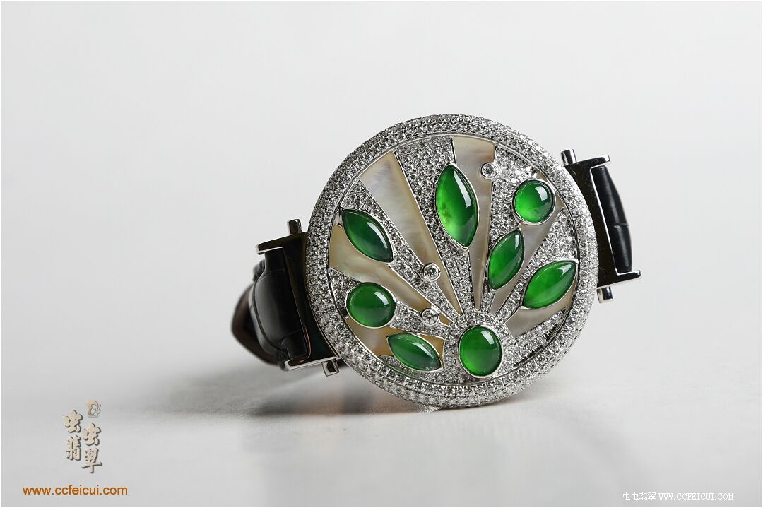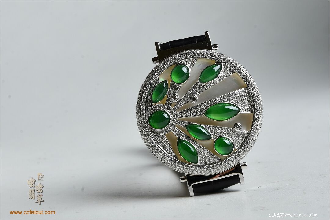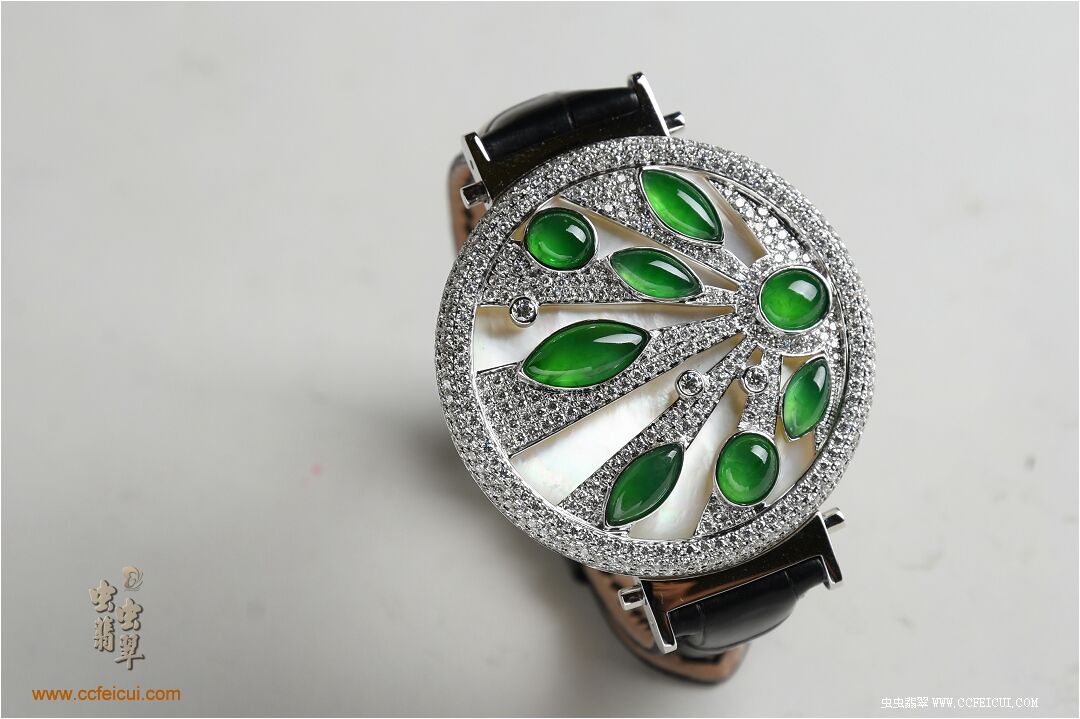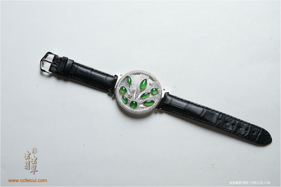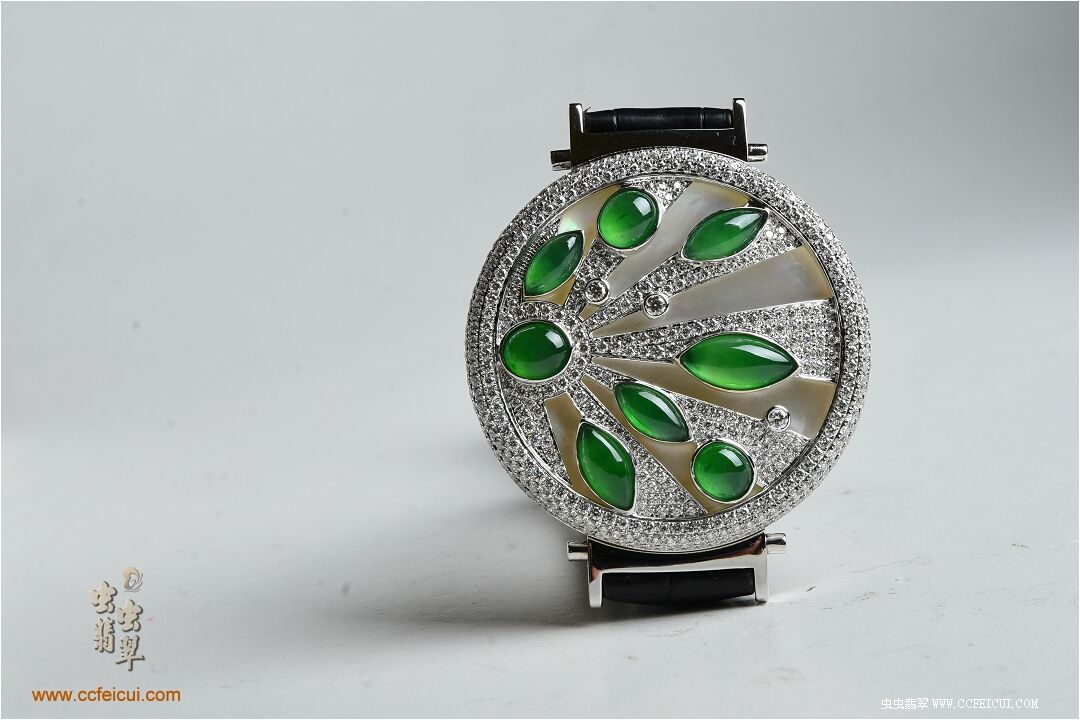 商品名称:张小姐[G18K白金钻石高冰满绿翡翠手表腕饰吊坠]镶嵌定制