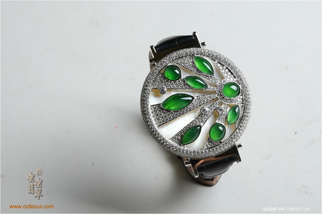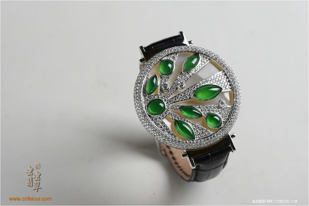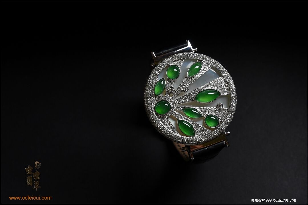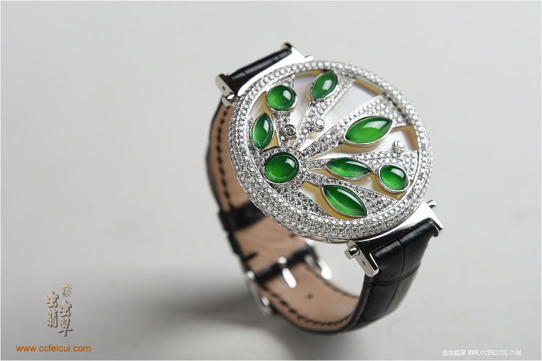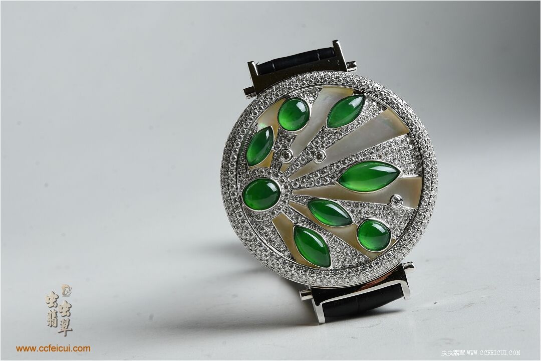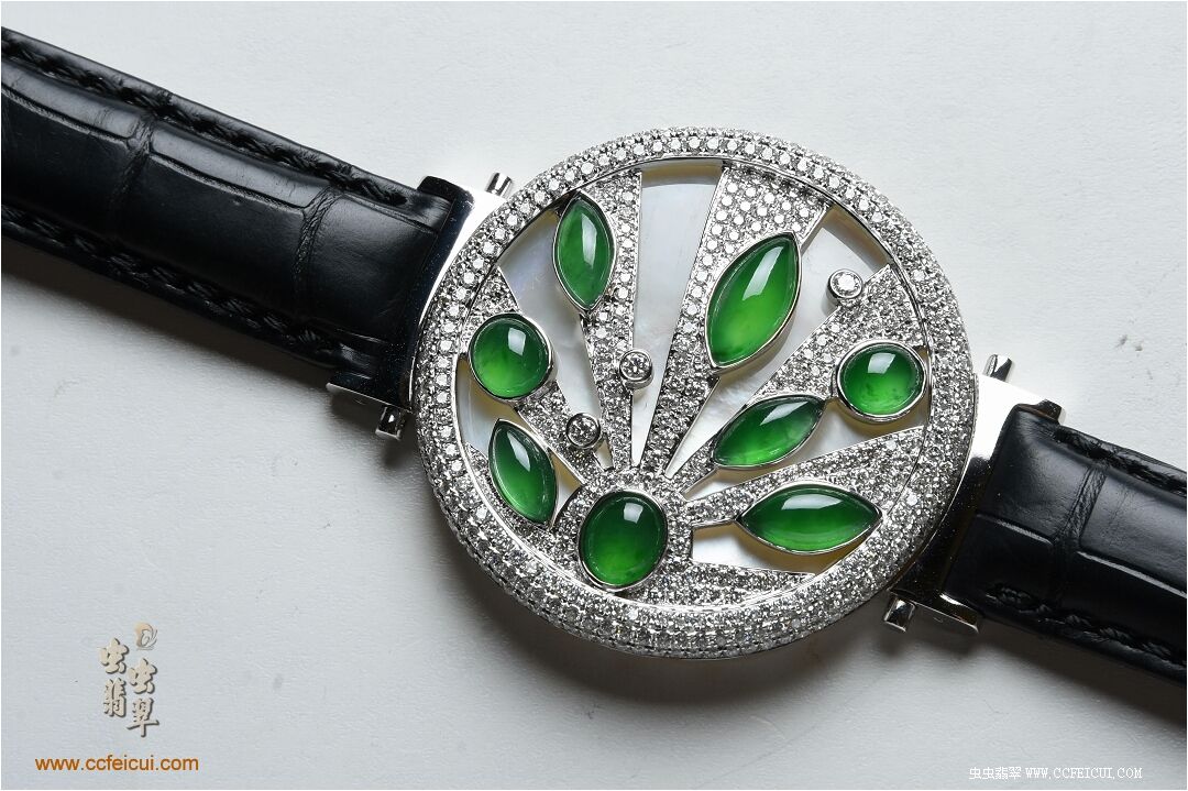 商品名称:张小姐[G18K白金钻石高冰满绿翡翠手表腕饰吊坠]镶嵌定制