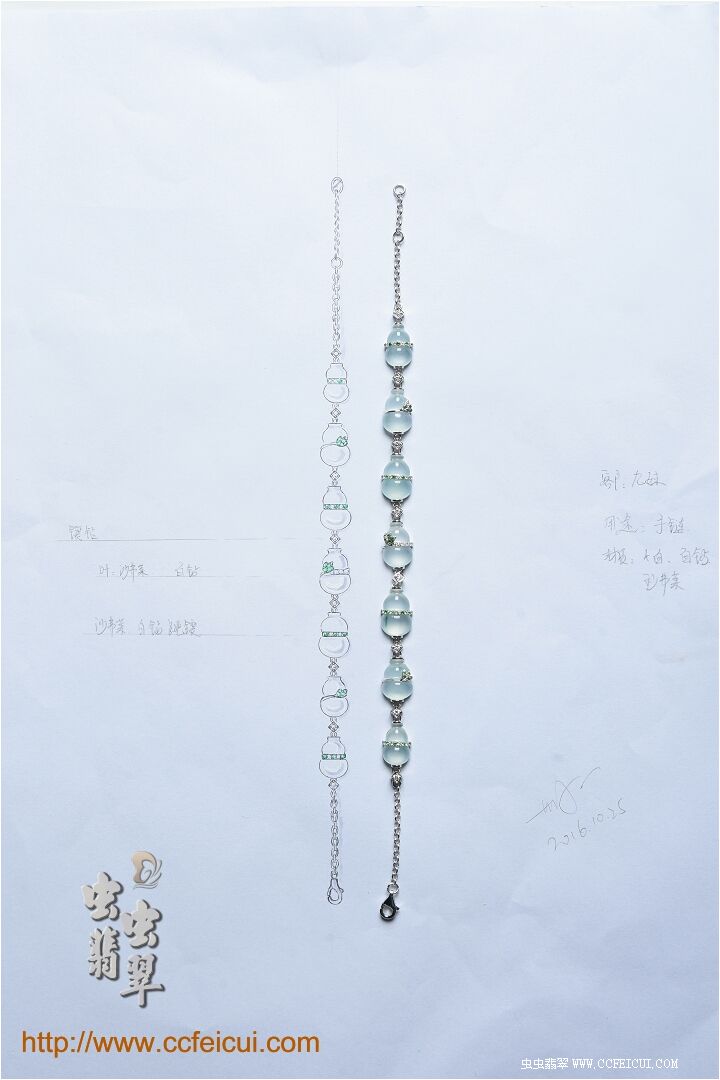 网站首页 -> 论坛首页 -> 虫虫饰品 -> 个性定做 -> 九妹【G18K白+钻镶翡翠白冰葫芦手链】镶嵌定制(无尤设计) |