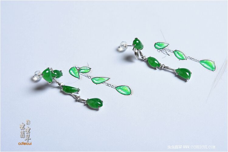 网站首页 -> 论坛首页 -> 虫虫饰品 -> 个性定做 -> JOJO【G18K白伴钻镶绿团团翡翠耳环】镶嵌定制(无尤设计) |