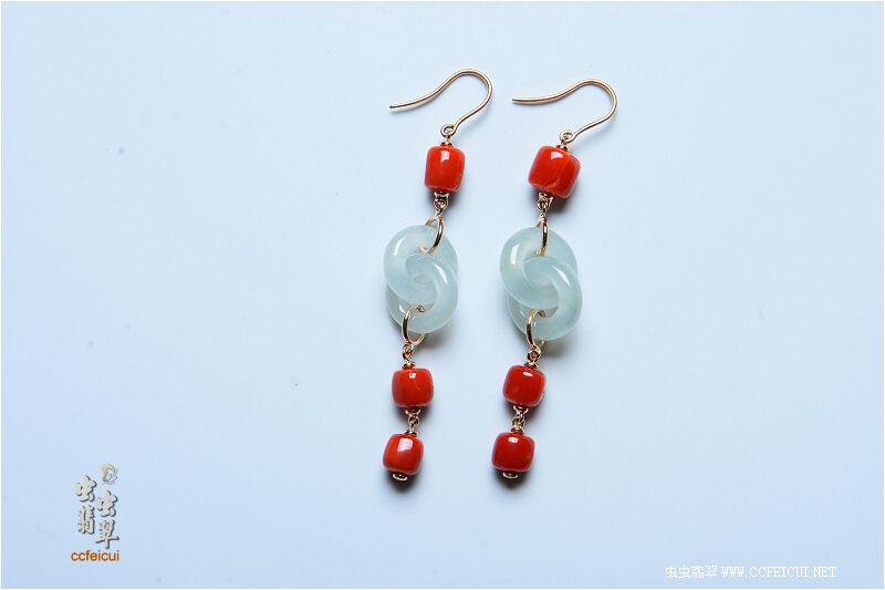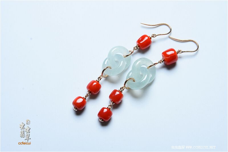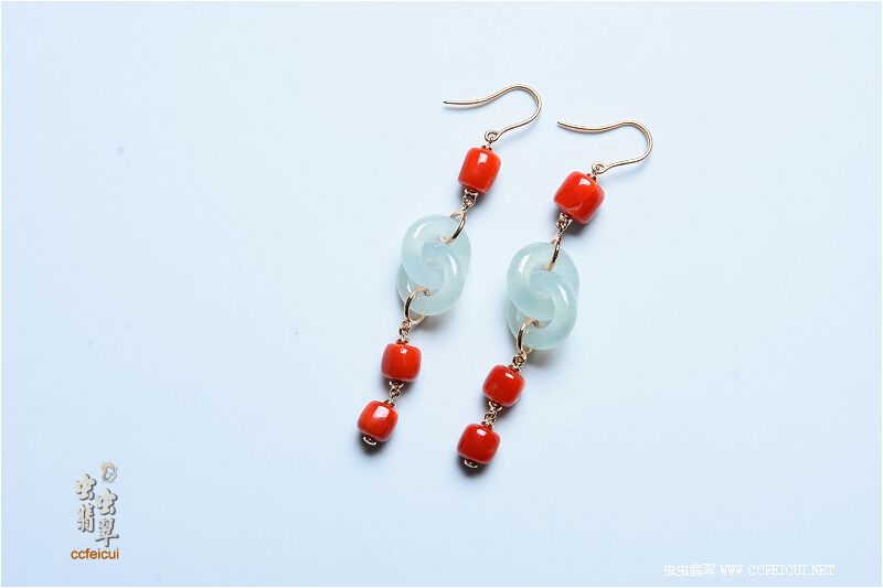 商品名称:微笑的眼睛【G18K红金+珊瑚镶嵌冰环耳坠】镶嵌定制