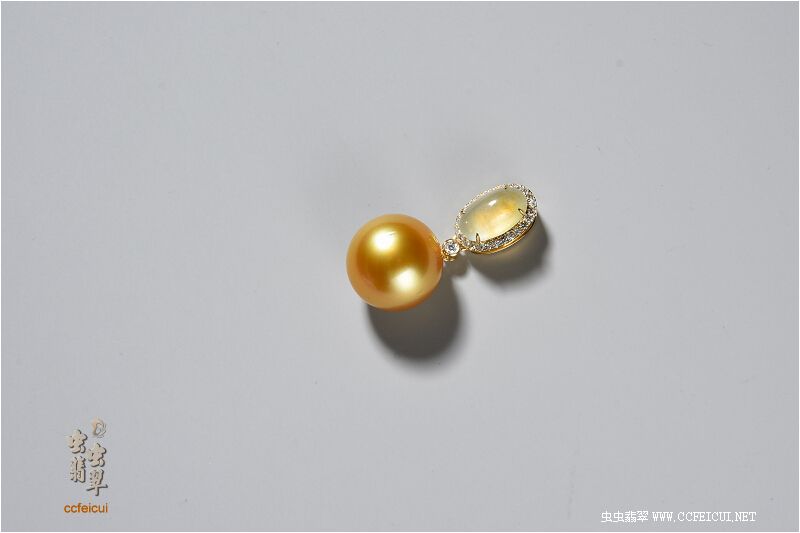 商品名称:pupu【G18K黄金伴钻+翡翠蛋面镶嵌金珠吊坠】镶嵌定制
