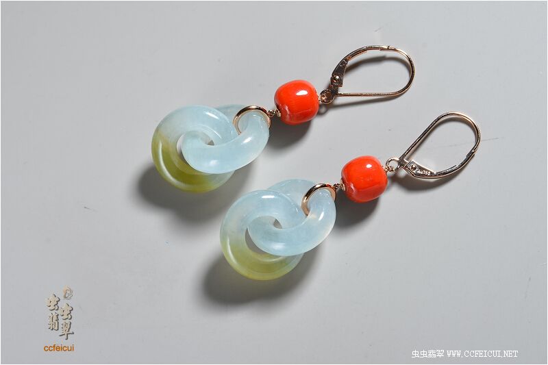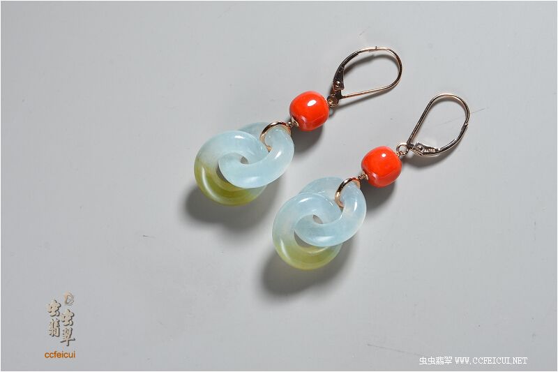 商品名称:candy山风【G18K玫瑰金镶嵌翡翠玉环+珊瑚鼓珠耳坠】镶嵌定制