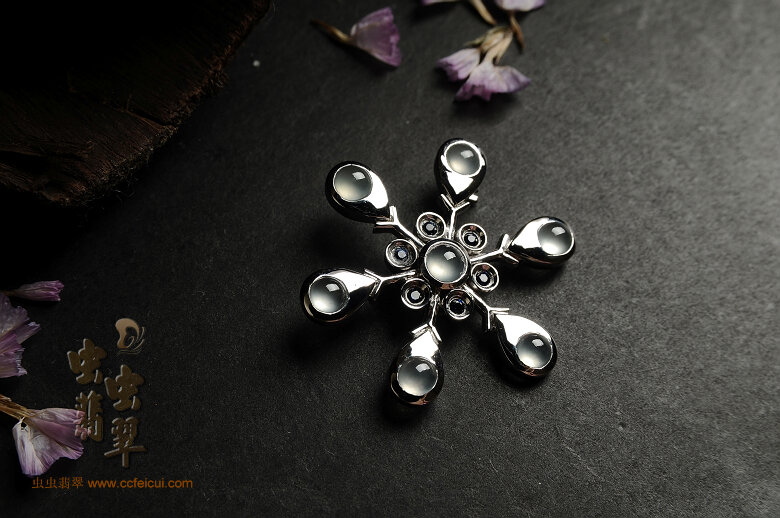 商品名称:灵感的云雀的翡翠胸吊两用雪花坠镶嵌定制(G18K白+蓝宝)