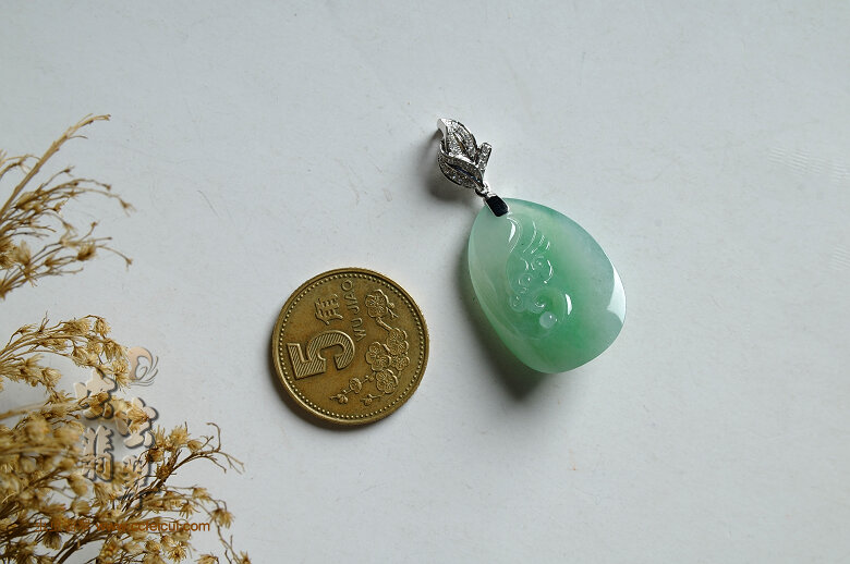 商品名称:G18K白金伴钻精镶仿古汉风小凤翡翠吊坠(已售)