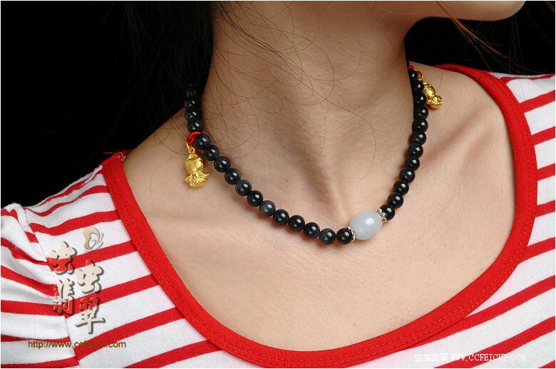 还可做小V项链,路路通或中国结可以任意点缀于胸前或颈后,