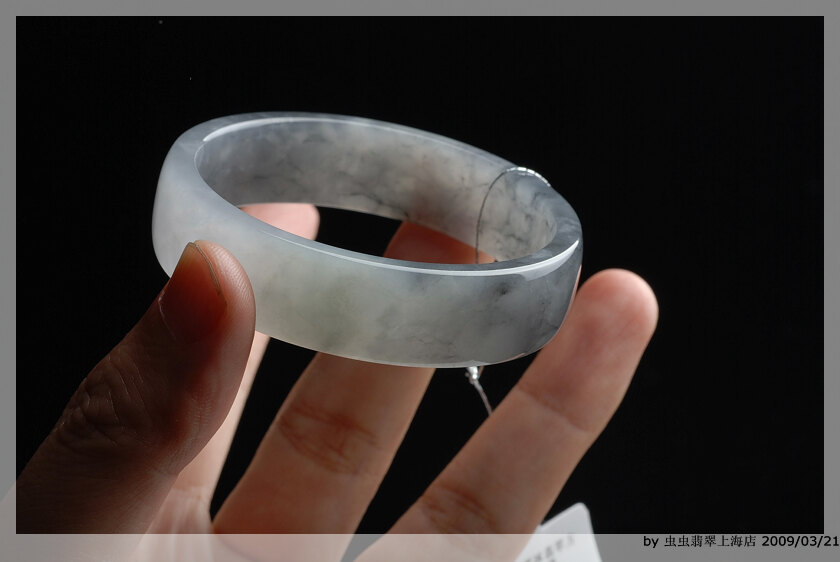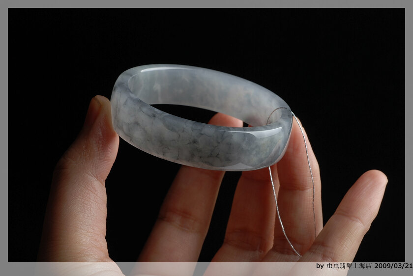 黑冰料子的介绍:/forum/dispost.asp?BoardID=11&PostID=3226 黑冰料子是我至今见过刚性最好的,可能这个跟它内含成分有关,这种硬度,随便一拉光就是镜子一样的光面,即使是大到66mm宽到21的宽镯子,那出来的声音也是刚刚的高音,脆生生的音频,老远都掩不住的直钻入耳。这种飘逸的墨黑的花色,丝雾状态如水墨画般,轻盈盈的,总是要忍不住透过光去研究了透彻~ 目前镯子全部取完,成品在三间实体里分别都有销售。