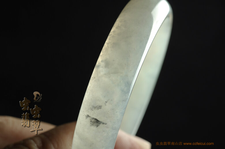 镯子表面有一条长4MM的小石纹,可以抠到(见照片六)。